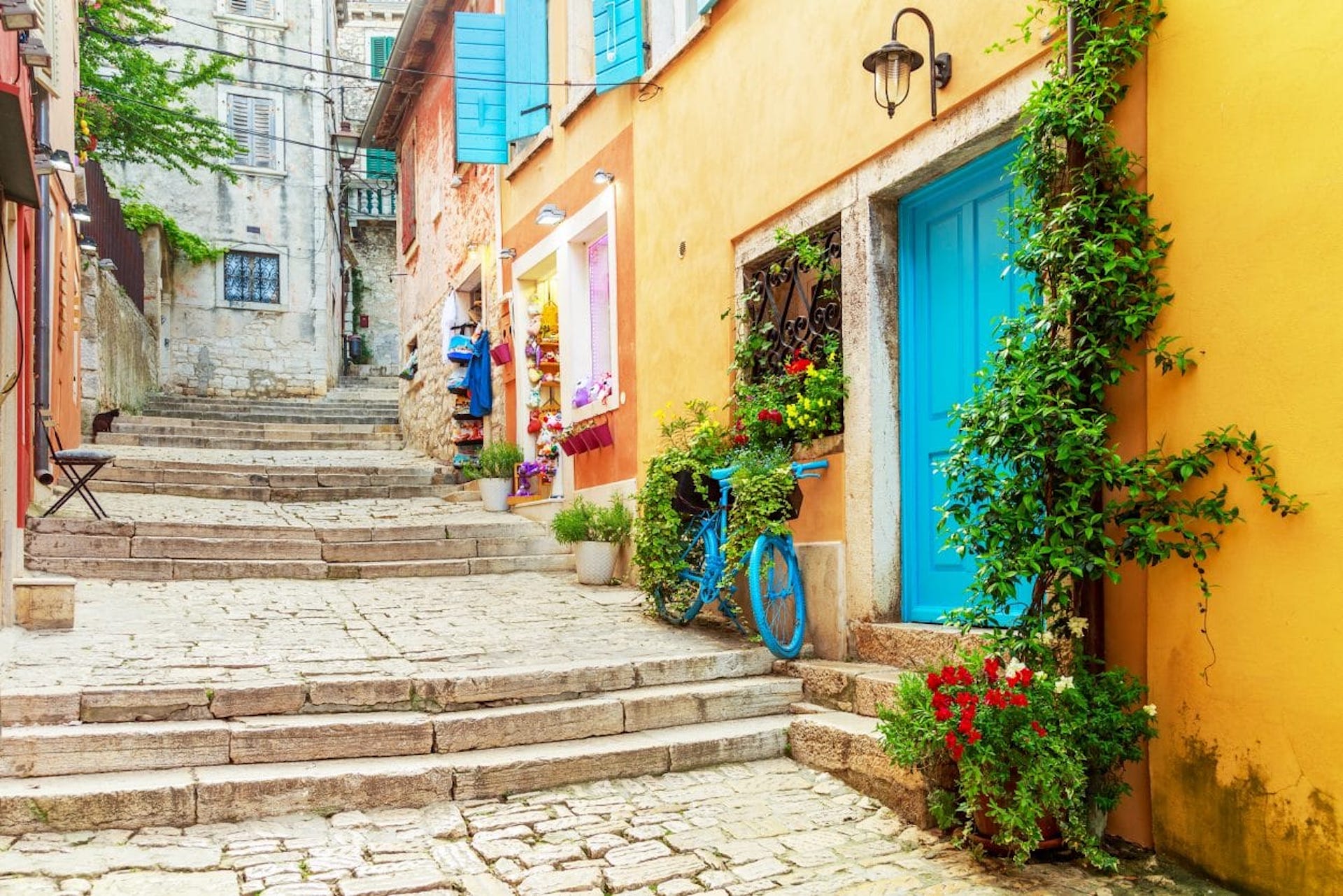 From there, you’ll be following the tunnels and bridges of the famous Parenzana cycling path, a former railway route; Sometimes cycling along the coastline, other times cycling between the wine hills of Istria. Your path will lead you over the border to Croatia, to a Mediterranean environment, and a contrasting sight to the mountains that were surrounding you just a few days before. The next few days of cycling will be right along the coast of the Istrian Peninsula, feasting your eyes on its crystal clear waters and exploring the soulful towns like Rovinj and Pula. These last few days, the water will probably look so inviting that you should definitely pack some swimming gear and take a swim in the refreshing sea.